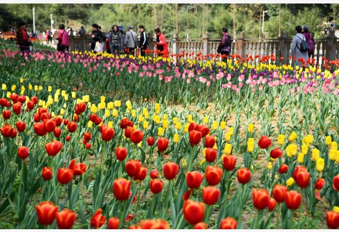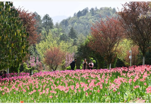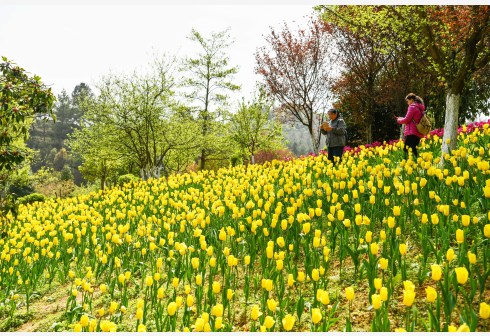 3月23日,游客在贵州省龙里县龙架山国家森林公园赏花观光。近日,贵州省黔南布依族苗族自治州龙里县龙架山国家森林公园里的郁金香、樱花陆续开放,吸引游客前来赏花观光。 新华社记者 杨文斌 摄