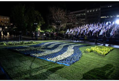 3月24日,希腊雅典的一处花坛被修剪成希腊国旗的图案。1821年3月25日,希腊反对奥斯曼帝国统治的独立战争拉开序幕。希腊每年在这一天都要举行各种纪念活动。新华社 发(莱夫特里斯·帕察里斯 摄)