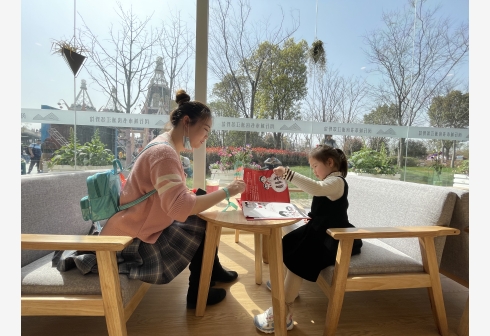 3月28日,家长在闵行城市书房浦江郊野馆为孩子拍照留影。当日,上海市民文化节文化服务日启动,位于浦江郊野公园的城市书房正式开馆。这是上海首家开在公园内的公共书房,建筑面积92平方米,藏书15000余册,设有借阅区、自习区、主题区和活动区。 新华社记者 王翔 摄
