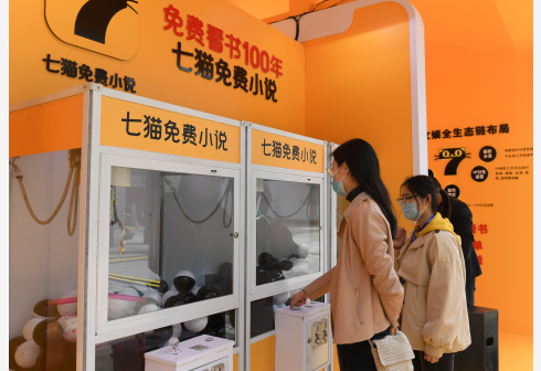 4月16日,参观者在一家数字阅读平台的展台体验游戏,抓取阅读福利。当日,中国数字阅读大会文化创意展在杭州西湖畔举行,通过“文化+科技”“文化+生活”的展现,倡导共建书香社会。4月16日,以“数字赋能新发展,阅读追梦新征程”为主题的第七届中国数字阅读大会在杭州召开。新华社记者 翁忻旸 摄