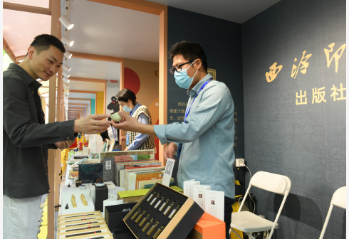 4月16日,参观者在文化创意展上了解西泠印社推出的文创产品。当日,中国数字阅读大会文化创意展在杭州西湖畔举行,通过“文化+科技”“文化+生活”的展现,倡导共建书香社会。4月16日,以“数字赋能新发展,阅读追梦新征程”为主题的第七届中国数字阅读大会在杭州召开。 新华社记者 翁忻旸 摄
