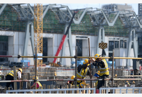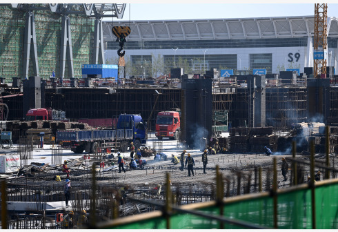 5月4日,中建八局的建设者在国家会展中心(天津)二期工程现场施工。 “五一”假期,中建八局的众多建设工人坚守在国家会展中心(天津)二期工程施工现场。国家会展中心(天津)是商务部和天津市合作共建项目。目前,国家会展中心(天津)一期工程已进入收尾阶段,二期工程建设如火如荼。项目全面建成后,将为京津冀城市群提供大型的国际会展场所。新华社记者 李然 摄