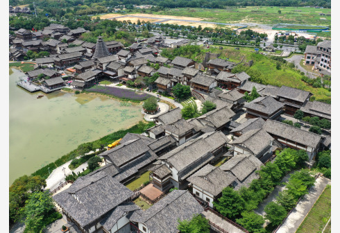 这是广西南宁市相思小镇(5月4日摄,无人机照片)。 “五一”假期,人们走进广西南宁市相思小镇,感受民风民韵,尽享假期生活。新华社记者 周华 摄