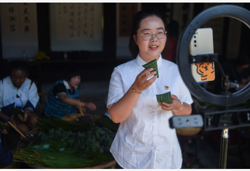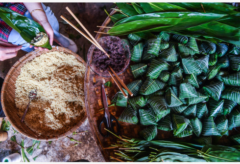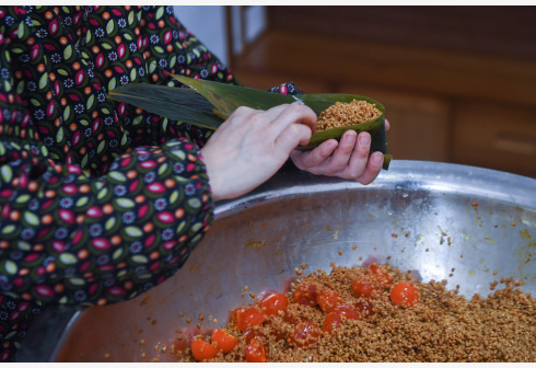 6月8日,湖源乡窈口村村民在包传统灰汤粽。端午将至,浙江省杭州市富阳区湖源乡窈口村村民开始忙碌起来,采粽叶、制作灰汤、浸制米、包粽子、煮粽子,整个山村弥漫着灰汤粽的香味。有着300多年制作历史的灰汤粽是湖源乡窈口村当地传统的手工美食,村民们取干净的稻草烧成灰,把糯米放进过滤后的灰汁内浸泡,然后包裹成粽子。灰汤粽呈金黄色,有一股特别的清香,口感细腻,是极具地方特色风味的食品。因稻草灰水含碱性,对灰汤粽起到一定的防腐保鲜作用。近年来,随着乡村旅游的兴起,湖源乡窈口村升级传统灰汤粽产业,积极拓宽灰汤粽的销售渠道,同时推出了古法灰汤粽特色体验项目,让游客自己动手感受端午传统文化,带动了当地特色产业发展,助力乡村振兴。 新华社记者 徐昱 摄