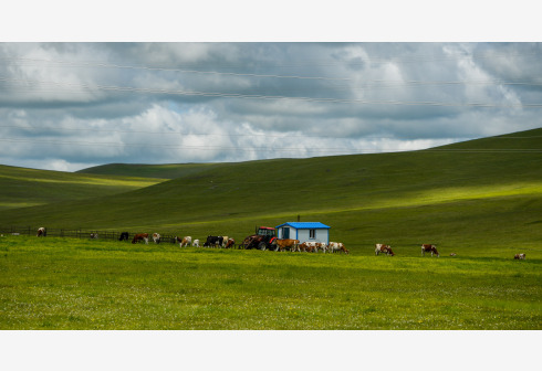 这是内蒙古呼伦贝尔332国道旁的草原风光(6月10日摄)。正值初夏,内蒙古呼伦贝尔一片新绿。从海拉尔区到根河市,332国道途经陈巴尔虎草原、额尔古纳湿地和大兴安岭林区,景色各异,美不胜收。 新华社记者 连振 摄
