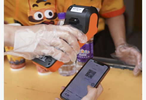 6月16日,北京欢乐谷一商户使用POS机对使用数字人民币的消费者进行扫码收款。当日,数字人民币体验活动在北京欢乐谷举行。交通银行北京市分行工作人员向游客介绍数字人民币相关知识,引导游客下载数字人民币应用程序、开通数字人民币钱包,部分游客还在园内使用数字人民币消费。近日,北京启动了新一轮数字人民币试点活动,消费者可使用数字人民币在多家商户消费。 新华社记者 陈钟昊 摄