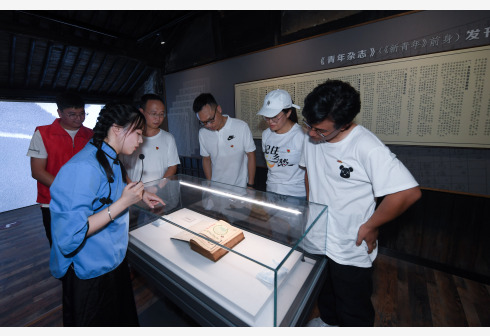 6月17日,党员在讲解员的带领下参观“红色报刊史料研学中心”。当日,“红色报刊史料研学中心”在浙江省杭州市富阳区大源镇蒋家村正式启用。该中心展陈包括《新青年》《觉悟》《新潮》《湘江评论》等在内的100余种报刊史料,引导观众了解中国共产党党史及相关重大事件、重要会议、重要人物等。 新华社记者 徐昱 摄