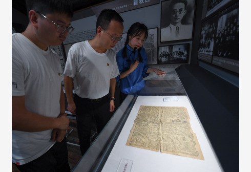 6月17日,党员在讲解员带领下参观“红色报刊史料研学中心”展示的1919年出版的《湘江评论》。当日,“红色报刊史料研学中心”在浙江省杭州市富阳区大源镇蒋家村正式启用。该中心展陈包括《新青年》《觉悟》《新潮》《湘江评论》等在内的100余种报刊史料,引导观众了解中国共产党党史及相关重大事件、重要会议、重要人物等。 新华社记者 徐昱 摄
