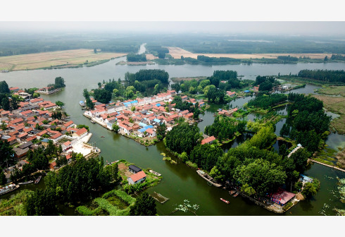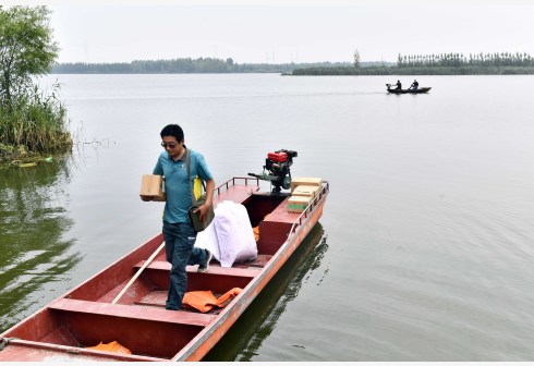 这是邮递员王少朋服务的微山县南阳镇柳沟村和龚庄村(6月20日摄,无人机照片)。 位于微山湖北端的山东省济宁市微山县南阳镇四面环水,交通不便,生活物资和邮件包裹全靠船进船出。36岁的共产党员王少朋,自2007年工作以来就一直负责着微山县邮政分公司南阳支局唯一一条水上邮路。 这条邮路,沿线共有7个自然村。王少朋每投递一班一圈走下来60多公里,其中水路大约45公里。冬去春来,寒来暑往,一人一船一邮路,王少朋一走就是14年。他进村入户投递报刊、文件、包裹,被村民们亲切地称为“湖上鸿雁”。 南阳镇留守老人多,外出的子女会为父母寄来各样的网购物品。作为土生土长的南阳镇人,王少朋知道,邮船虽小,却承载着远方子女对家人的亲情;邮路不长,却投递着一份温情与守望…… 新华社记者 郭绪雷摄