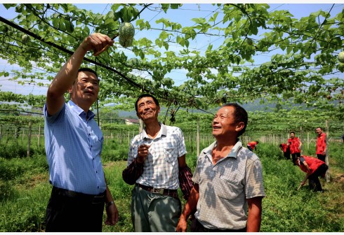 6月23日,在长兴县小浦镇光耀村,农技专家送农技培训到田间,指导吊瓜帮扶基地的农户科学修剪藤蔓。 近期,浙江省湖州市长兴县小浦镇的党员干部推出系列便民服务机制,通过“杏福便民”微信号接收群众需求,推进政务智能流动办、农技培训送田间、温暖服务送上门等便民行动,促进便民服务常态化。 新华社记者 徐昱 摄