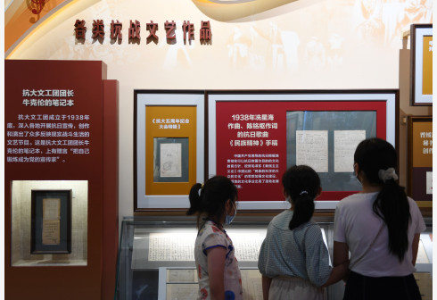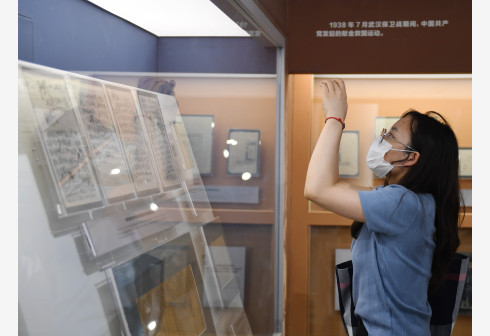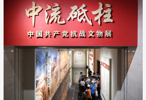7月7日,观众在中国人民抗日战争纪念馆参观“中流砥柱——中国共产党抗战文物专题展”。为纪念全民族抗战爆发84周年,中国人民抗日战争纪念馆联合沈阳“九·一八”历史博物馆、侵华日军南京大屠杀遇难同胞纪念馆等国内60家相关主题纪念(博物)馆,共同推出“中流砥柱——中国共产党抗战文物专题展”,7月7日起向公众开放。展览突出庆祝建党百年主题主线,紧扣讴歌中国共产党在抗日战争中的中流砥柱作用,精选抗战文物500余件/套、珍贵历史图片80余幅,辅以相关文字、地图、图表、景观以及多媒体展示手段,通过以物证史,把抗战文物史料背后蕴藏的动人故事和承载的伟大精神,传递给人民大众,引领人们从历史中汲取信仰、智慧和前行的力量。 新华社记者 张晨霖 摄