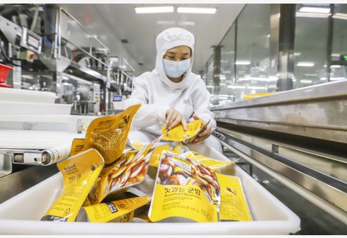 7月13日,工人在河北省遵化市一家板栗加工厂包装车间包装出口栗仁。 7月13日,海关总署发布数据,今年上半年我国货物贸易进出口总值18.07万亿元人民币,比去年同期增长27.1%,连续13个月实现同比正增长,外贸稳增长态势进一步巩固。 新华社发(刘满仓 摄)