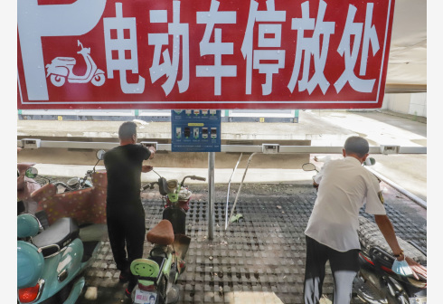 8月1日,在河北省遵化市一住宅小区,业主将电动车停放在集中停放处。8月1日起,《高层民用建筑消防安全管理规定》开始施行,对电动车“进楼”问题作出规定。规定明确,禁止在高层民用建筑公共门厅、疏散走道、楼梯间、安全出口停放电动自行车或者为电动自行车充电。鼓励在高层住宅小区内设置电动自行车集中存放和充电的场所。 新华社 发(刘满仓 摄)