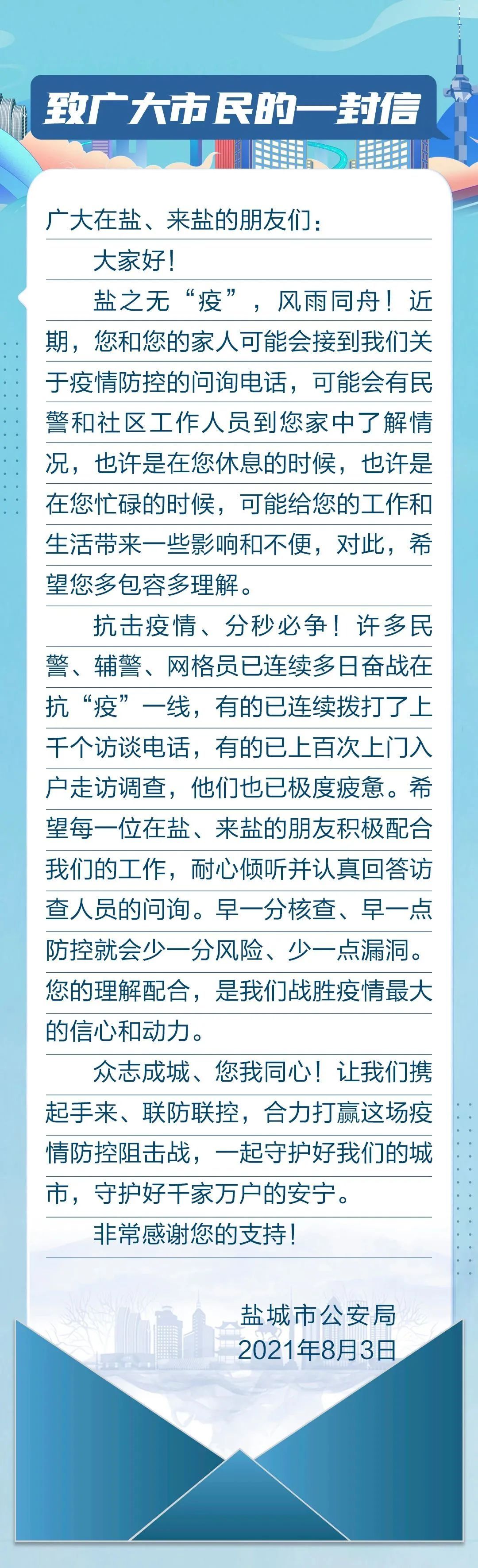 盐城市公安局致广大市民的一封信