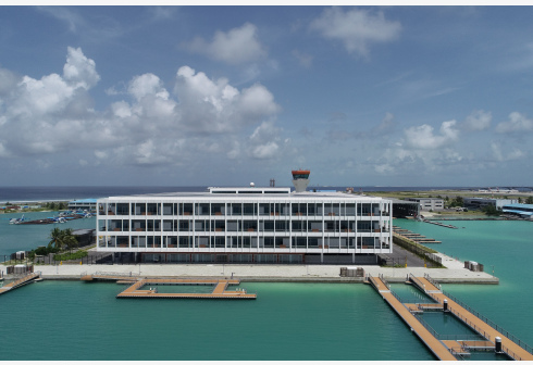 由中国企业承建的马尔代夫维拉纳国际机场水上飞机航站楼项目已完成竣工验收及试运行,日前正式交付并投入使用。这是2021年6月30日在马累用无人机拍摄的马尔代夫维拉纳国际机场水上飞机航站楼项目。 新华社 发(北京城建集团供图)