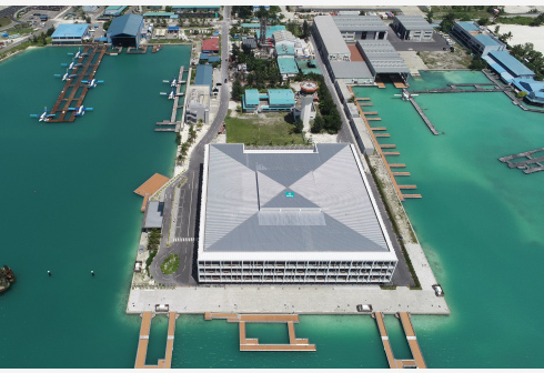 由中国企业承建的马尔代夫维拉纳国际机场水上飞机航站楼项目已完成竣工验收及试运行,日前正式交付并投入使用。这是2021年6月30日在马累用无人机拍摄的马尔代夫维拉纳国际机场水上飞机航站楼项目。新华社 发(北京城建集团供图)