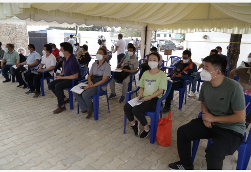 8月20日,中国公民在坦桑尼亚达累斯萨拉姆的新冠疫苗接种点等待接种疫苗。为海外中国公民接种新冠疫苗的“春苗行动”20日在坦桑尼亚最大城市达累斯萨拉姆启动,将为约4500名在坦中国同胞接种疫苗。 新华社 发(赫尔曼·埃马纽埃尔 摄)