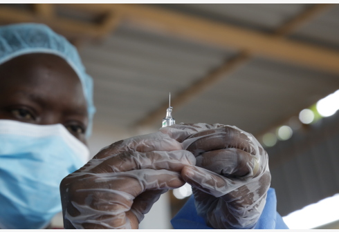 8月20日,一名医务人员在坦桑尼亚达累斯萨拉姆的新冠疫苗接种点工作。为海外中国公民接种新冠疫苗的“春苗行动”20日在坦桑尼亚最大城市达累斯萨拉姆启动,将为约4500名在坦中国同胞接种疫苗。 新华社 发(赫尔曼·埃马纽埃尔 摄)