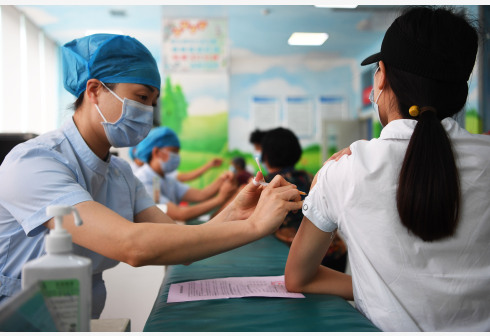 8月23日,医务人员在郑州市金水区丰庆路街道办事处安泰社区卫生服务中心为市民接种疫苗。根据气象部门消息,郑州市本轮强降雨过程已结束。当日,郑州市防汛抗旱指挥部决定,自8月23日15时起,有序恢复正常生产生活秩序。按照指挥部通知,郑州市公共交通恢复正常运营;具备安全施工条件的建筑工地有序恢复正常作业;旅游景区全面开展隐患排查和风险评估,在确保安全的前提下对外开放;商铺和经营网点恢复正常营业;地下商场、地下停车场、住宅小区地下室等恢复正常使用。同时,疫情风险防控区域内的生产生活秩序按照疫情防控有关规定执行。 新华社记者 张浩然 摄