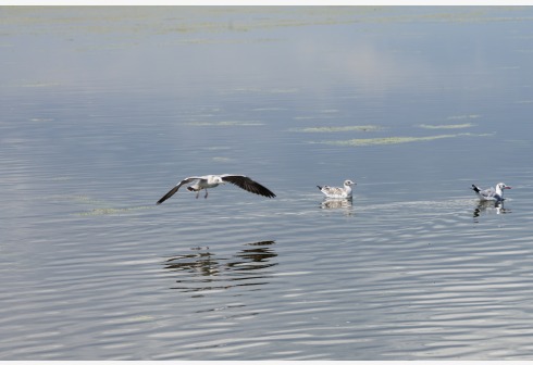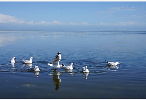 8月31日在青海湖拍摄的水鸟。秋日,不少水鸟在青海湖畔栖息觅食。新华社记者 张军 摄