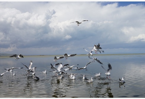 8月31日在青海湖拍摄的水鸟。秋日,不少水鸟在青海湖畔栖息觅食。 新华社记者 张军 摄