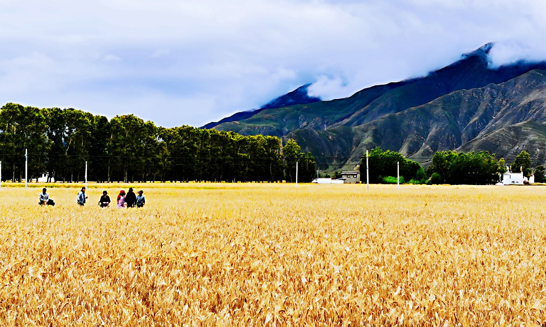 拉萨市林周县边交林乡待收割的青稞田(9月5日摄)。喜看青稞千重浪,高原尽带黄金甲。九月的雪域高原,一片丰收的喜人景象。新华社记者 沈虹冰摄
