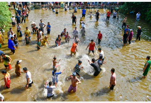 10月2日,在贵州省剑河县太拥镇昂英村,游客和村民参加抓鱼比赛。当日,贵州省黔东南苗族侗族自治州剑河县太拥镇昂英村举办“开鱼节”活动,村民和游客通过抓鱼比赛、跳芦笙舞、长桌宴等形式,庆祝苗寨丰收,欢度国庆假期。新华社记者 杨文斌 摄