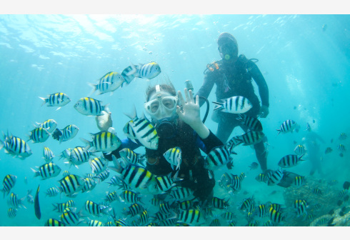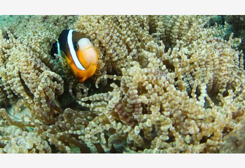 这是在分界洲岛海域拍摄的海葵内的小丑鱼(9月29日摄)。分界洲岛位于海南陵水黎族自治县,其周边海域生态系统为典型的珊瑚礁生态系统。分界洲岛开发前,海底珊瑚因不法人员盗采损毁严重,海底生态受到严重破坏。为了有效恢复分界洲岛周边海域海底生态,海南分界洲岛旅游区自2004年起联合海南省海洋与渔业科学院开展珊瑚保育工作,实施珊瑚移植等海洋生态修复工程,带动、吸纳周边渔民到景区就业,降低渔船对海洋生态造成的危害。经过十多年的保护,目前分界洲岛旅游区海域珊瑚覆盖率达34%,部分浅水区域珊瑚覆盖率达到40%-50%,海洋生物也逐渐多了起来。 新华社记者 杨冠宇 摄