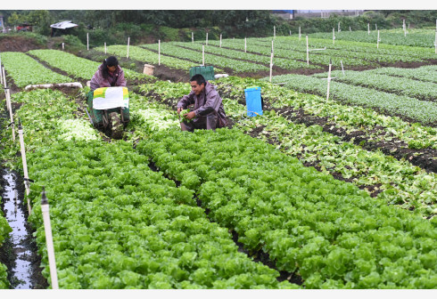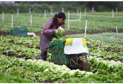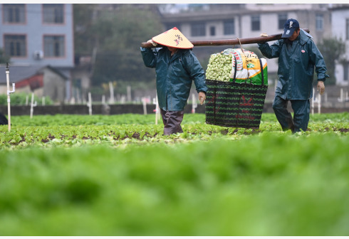 11月2日,在广西柳州市柳江区进德镇,菜农在基地里采摘蔬菜。近日,广西柳州市柳江区“南菜北运”基地里种植的多种蔬菜陆续丰收,菜农忙着采摘蔬菜,加大市场供应量。新华社 发(黎寒池 摄)