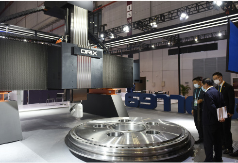 11月5日,参观者在第四届进博会技术装备展区尼古拉斯克雷亚展台了解高架桥式龙门加工中心和由其加工的风力发电设备零部件。第四届进博会技术装备展区展览面积6万平方米,超过35个国家和地区的近300家企业参展,展区汇聚具有全球影响力的智能制造技术和高端装备领域的展商,设工业产成品、成型装备、工程机械、数字信息化、产业机械五大板块,能源低碳及环保技术、集成电路、数字工业三大专区。新华社记者 徐亮 摄