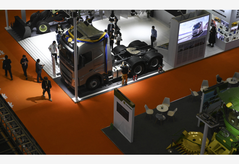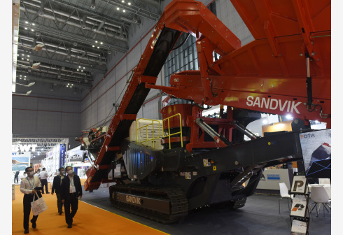 11月5日,观众从第四届进博会技术装备展区山特维克展台展出的移动式破碎筛分设备前走过。第四届进博会技术装备展区展览面积6万平方米,超过35个国家和地区的近300家企业参展,展区汇聚具有全球影响力的智能制造技术和高端装备领域的展商,设工业产成品、成型装备、工程机械、数字信息化、产业机械五大板块,能源低碳及环保技术、集成电路、数字工业三大专区。新华社记者 徐亮 摄