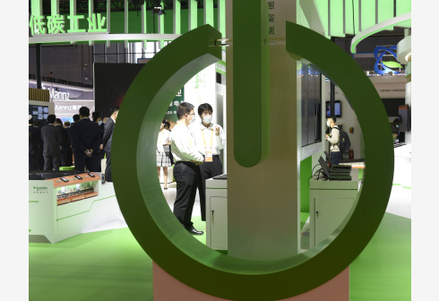 11月5日,人们在第四届进博会技术装备展区参观。第四届进博会技术装备展区展览面积6万平方米,超过35个国家和地区的近300家企业参展,展区汇聚具有全球影响力的智能制造技术和高端装备领域的展商,设工业产成品、成型装备、工程机械、数字信息化、产业机械五大板块,能源低碳及环保技术、集成电路、数字工业三大专区。 新华社记者 郝建伟 摄