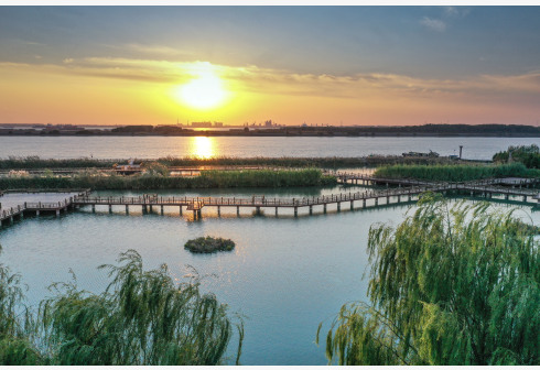 泰兴市虹桥镇长江生态湿地风光带景色(11月11日摄,无人机照片)。新华社记者 杨磊 摄