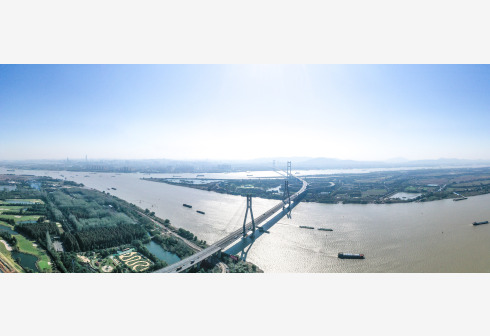 润扬长江大桥沿江风光(11月10日摄,无人机照片 )。新华社记者 杨磊 摄