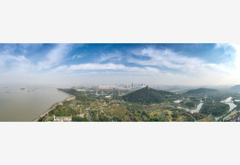 位于南通市的狼山国家森林公园沿江景色(11月13日摄,无人机照片)新华社记者 杨磊 摄