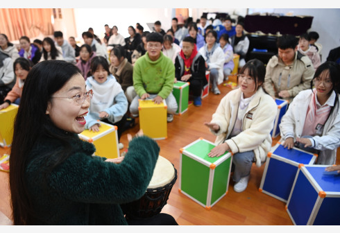 秦巴山深处的陕西省安康市白河高级中学依山而建,被称为“挂在半山腰的学校”。该校坚持“五育并举”,多年来大力推进素质教育,坚持开展社团活动,成立了涉及科技、体育、艺术、文学等内容的40多个社团,每周安排固定时间开展社团教学,促进学生全面发展。 新华社记者 陶明 摄
