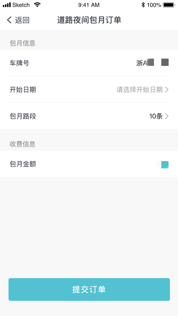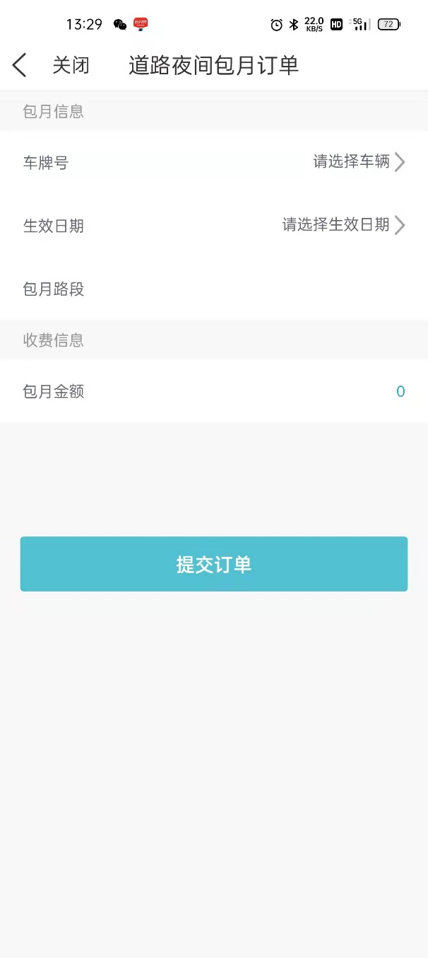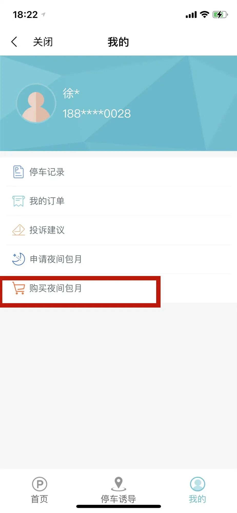 第四步:购买夜间包月 进入“购买夜间包月”页面→点击底部“购买夜间包月按钮”按钮→进入提交购买订单页面→选择车牌号、包月开始日期→提交订单并支付包月费用,包月时长默认1个月。