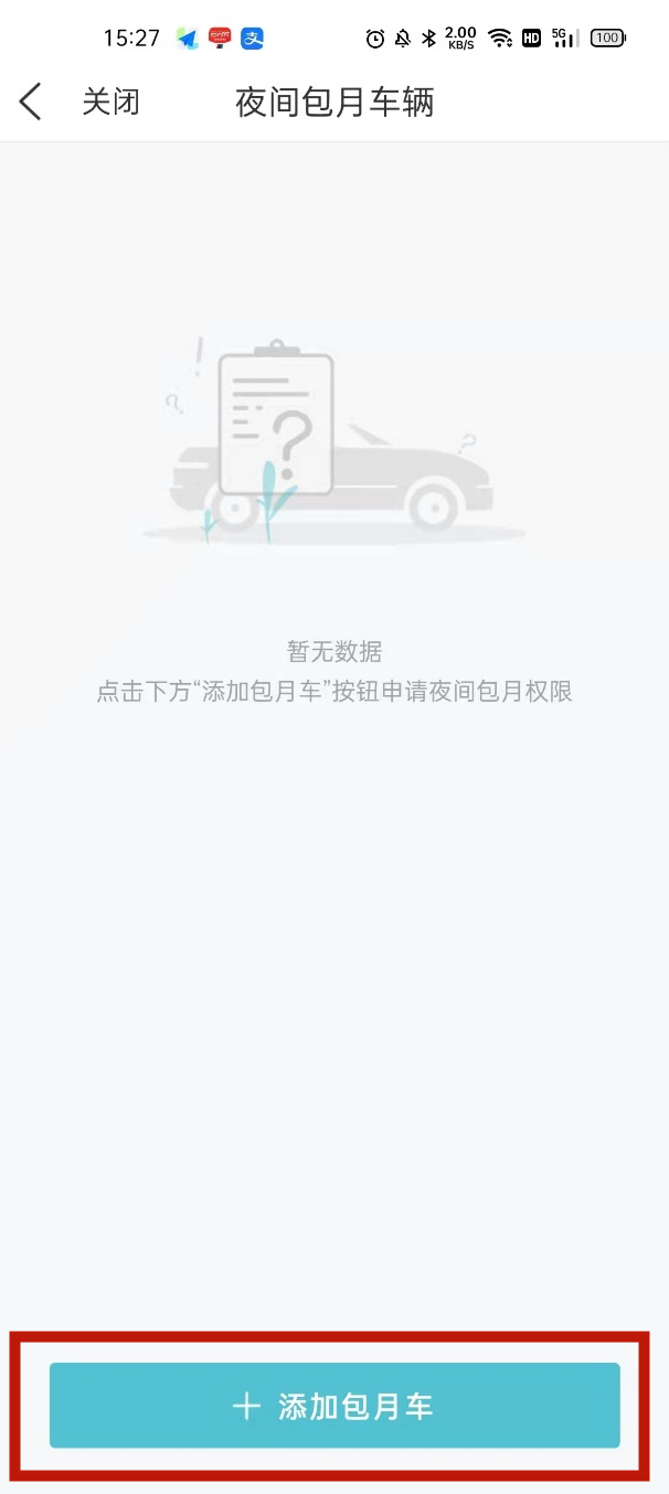 第二步:添加包月车 进入“夜间包月车辆”页面→点击底部“添加包月车”按钮→填写和上传申请材料→点击“提交”按钮。