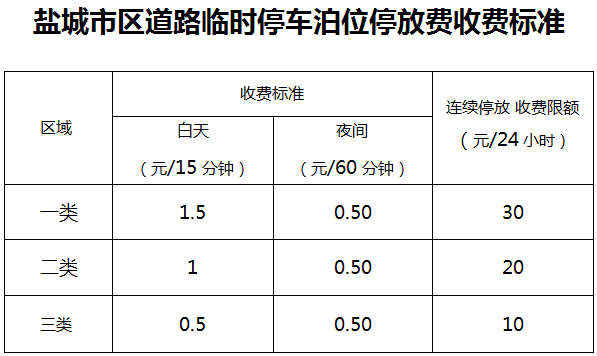亭湖区、盐都区、盐城经济技术开发区、盐南高 新 区发改委(经发局)、公安分局、财政局、市场监管局,市区各停车场经营单位: