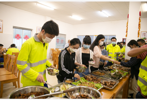 1月22日,在老挝琅勃拉邦,中老铁路琅勃拉邦维保管理中心员工在驻地品尝中老菜式“年夜饭”。为保障春节期间中老铁路正常运行,执行中老铁路老挝段固定设备维保任务的中国铁路昆明局集团有限公司琅勃拉邦维保管理中心中老员工22日在驻地布置新年装饰、吃“年夜饭”,提前过年。 新华社 发(凯乔 摄)