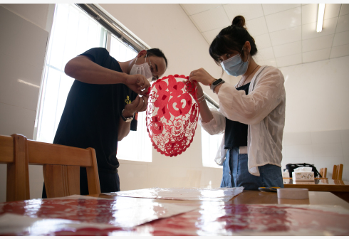 1月22日,在老挝琅勃拉邦,中老铁路琅勃拉邦维保管理中心员工在驻地贴窗花。为保障春节期间中老铁路正常运行,执行中老铁路老挝段固定设备维保任务的中国铁路昆明局集团有限公司琅勃拉邦维保管理中心中老员工22日在驻地布置新年装饰、吃“年夜饭”,提前过年。 新华社 发(凯乔 摄)