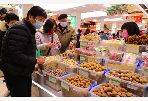 1月28日,市民在位于上海南京东路步行街上的三阳南货店内选购食品。近日来,上海街头充满喜庆迎新气氛,迎接即将到来的虎年春节。 新华社记者 方喆摄