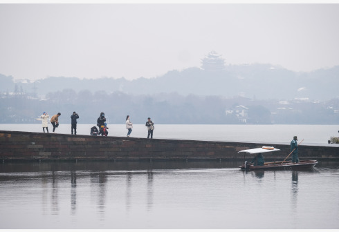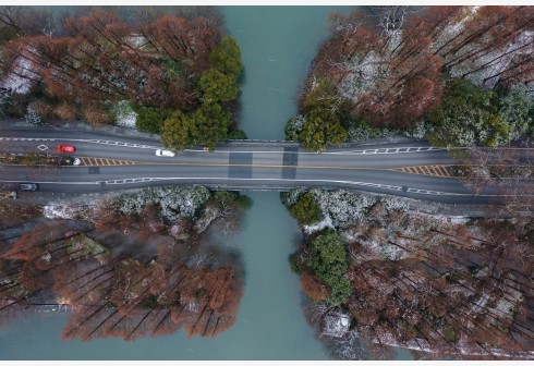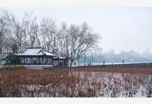 杭州西湖迎来新年初雪