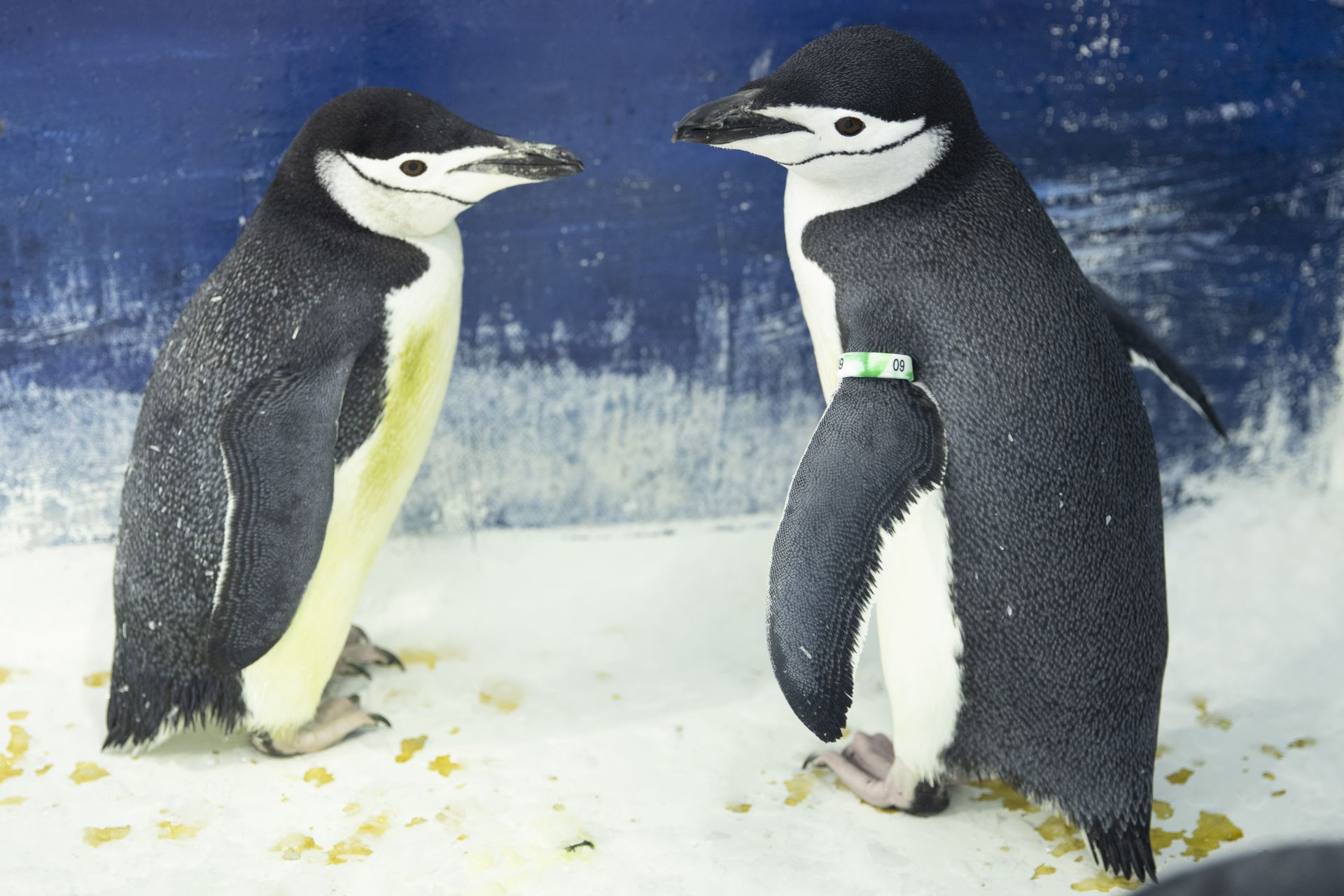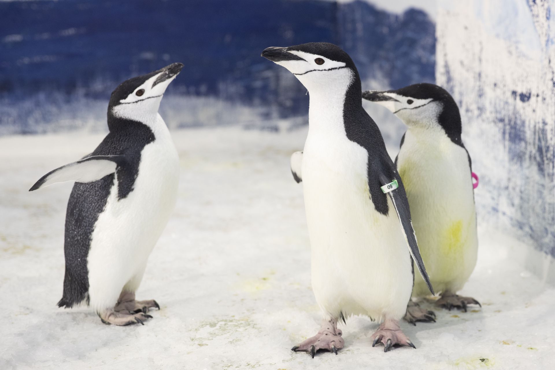 1月30日,在哈尔滨极地公园,新引进的帽带企鹅在适应“新家”。 当日,哈尔滨极地公园引进珍稀的南极帽带企鹅。这是黑龙江省首次引进该品种企鹅。 新华社记者 张涛 摄