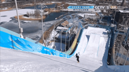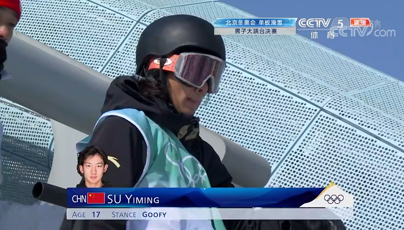 单板滑雪大跳台男子项目决赛刚刚在首钢园滑雪大跳台开始,此前在坡面障碍技巧比赛中拿到银牌、创造了中国单板滑雪历史的苏翊鸣再次出场。