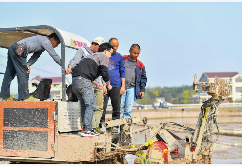 3月14日,在常德市桃源县陬市镇小马山村,农民学员听老师讲解农机的构造和性能。春耕备耕时节,湖南省常德市桃源县积极开展“送农机培训下乡”活动,把农业机械培训搬到田间地头,解决农民在农业机械作业过程中遇到的问题,为春耕备耕提供技术保障。 新华社记者 陈泽国 摄