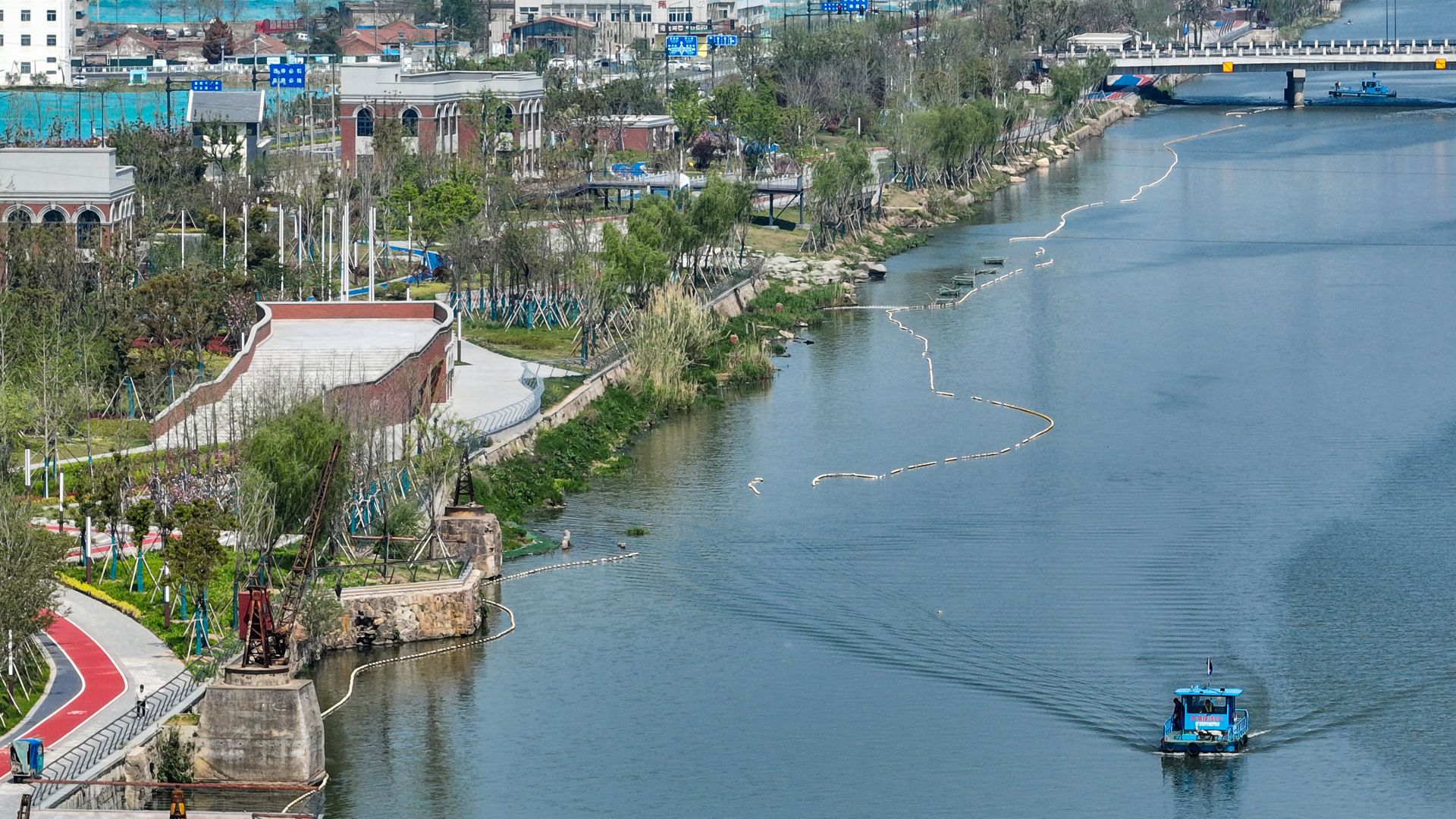 两艘清洁船正维护水质环境。盐阜大众报报业集团记者 李思远 摄