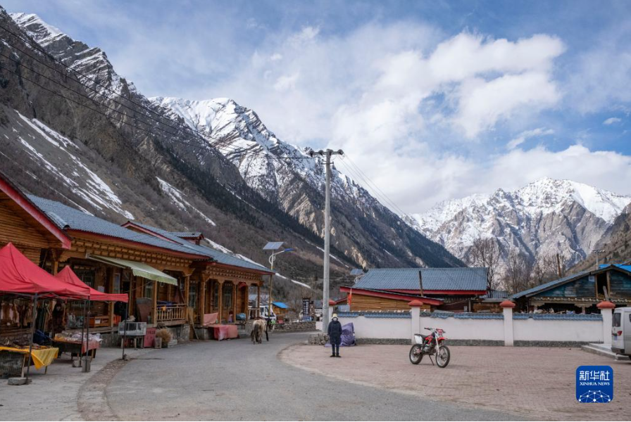这是米堆冰川脚下的林芝市波密县米堆村(4月23日摄)。新华社记者 孙非 摄
