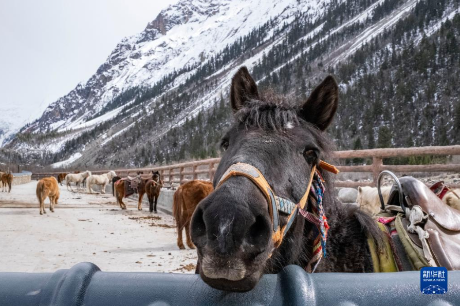 这是米堆冰川脚下用于接送游客的马(4月23日摄)。新华社记者 孙非 摄