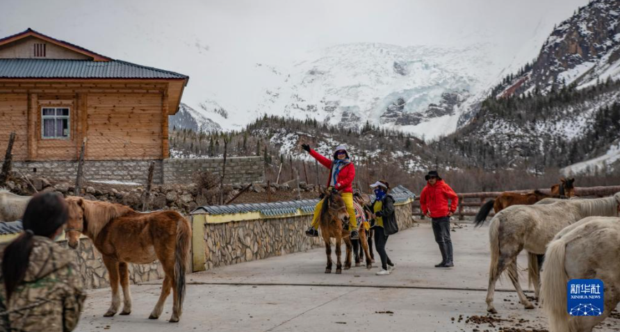游客骑马从米堆冰川返回(4月23日摄)。新华社记者 晋美多吉 摄